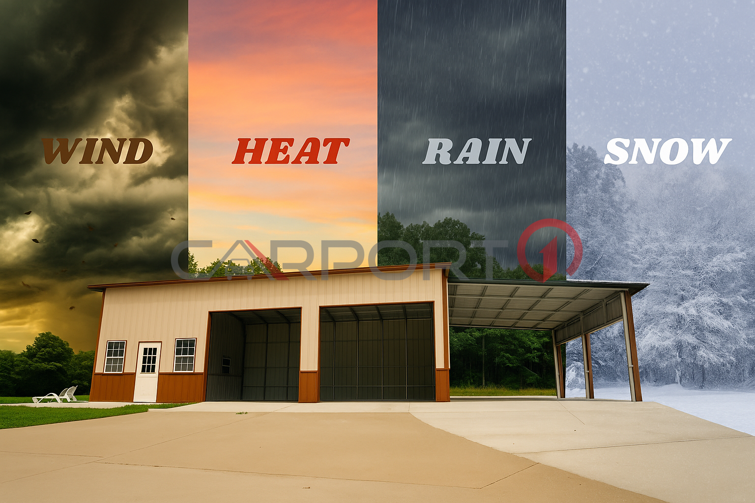 A Certified building must have a minimum wind rating of 80 mph and a snow-load rating starting at 20 lbs per square foot. Depending on your location and climate, you can choose to increase the ratings. The higher the rating, the stronger the metal structure. You can have a structure with the ability to be rated up to a 170 mph wind and a 70 lbs per square foot snow.