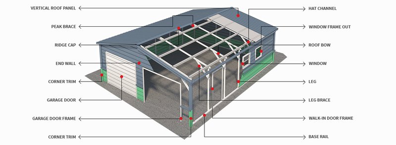 It makes the structure stronger and fits well inside the roof, hence it doesn’t smudge the aesthetic appeal of the structure. Our steel garages with a width size of 24 FT will include a bow, and all garages wider than 24 FT will have a truss.